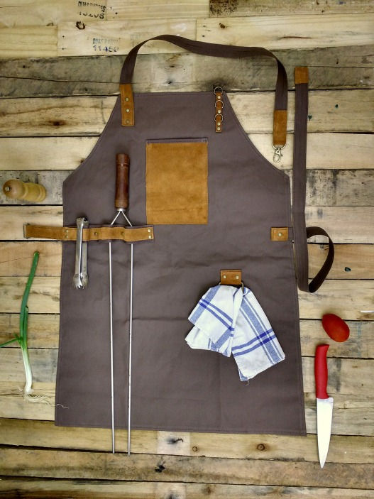 Avental resistente e funcional, com bolsos estratégicos e design robusto — perfeito para dominar a churrasqueira com estilo e praticidade.